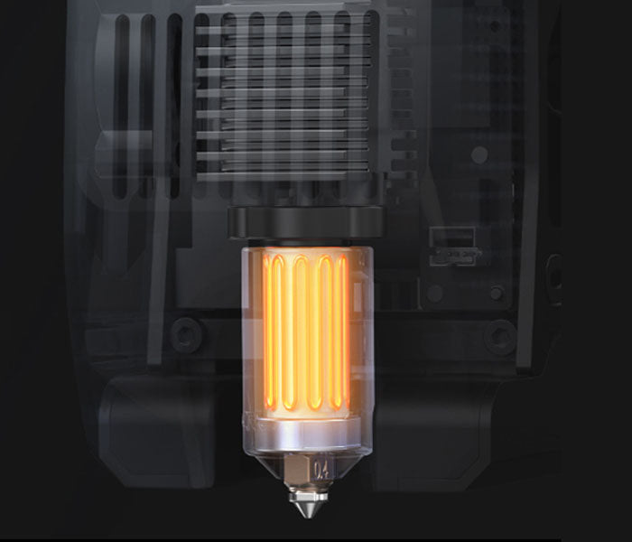Powered by a 70W heater, the flow rate of ABS at 280°C can reach 40 mm'/s, 66% higher than the previous design.